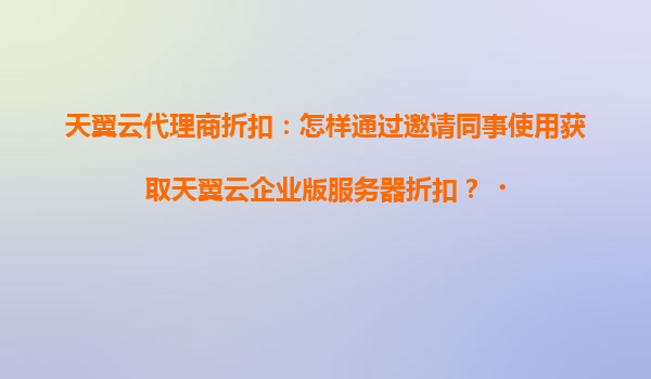 2025-04-19如何通过邀请同事使用天翼云企业版服务器获取代理商折扣? 一、天翼云与代理商的联合优势 天翼云作为中国电信旗下的云计算品牌,凭借其强大的技术实力和丰富的行业经验,已成为企...