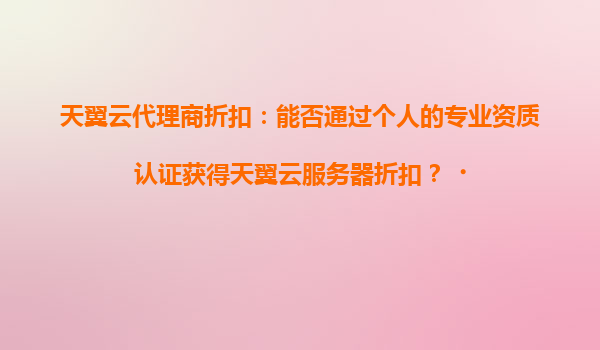 2025-04-19天翼云代理商折扣:个人专业资质认证能否获得服务器优惠? 一、天翼云的核心优势解析 央企级安全保障-依托中国电信基础设施,提供等保合规、数据加密等全方位安全防护 混合云...