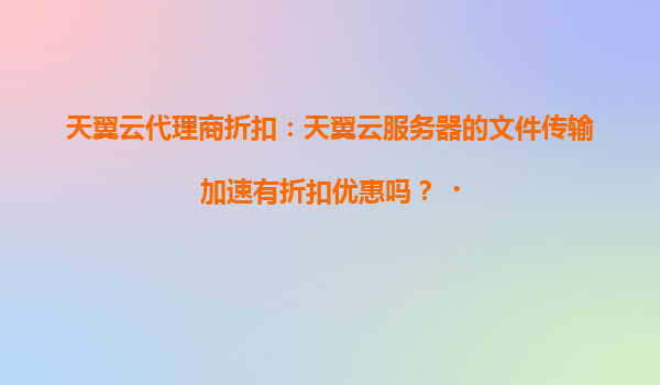 2025-04-19天翼云文件传输加速服务及代理商折扣优势解析 一、天翼云:数字化转型的强力引擎 作为中国电信旗下的云计算服务品牌,天翼云凭借央企背景与多年技术积累,已构...