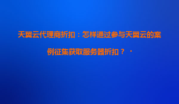 2025-04-19如何通过参与天翼云案例征集获取服务器折扣? 一、天翼云与代理商的协同优势 作为国内领先的云服务提供商,天翼云凭借央企背景和技术实力,为企业提供安全稳定的云计算服务。而天翼云代理商作为生态合作伙...