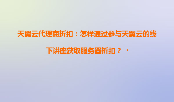 2025-04-19如何通过参与天翼云线下讲座获取服务器折扣? 一、天翼云与代理商的协同优势 作为中国电信旗下的云计算服务品牌,天翼云凭借其安全可靠的基础设施和覆盖全国的云资源布局,已成为企业数字化转型的首选平台...