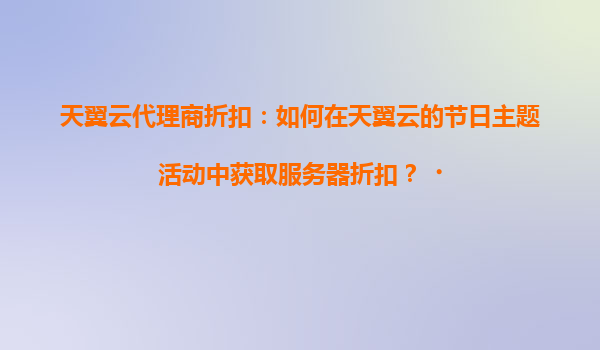 一、企业周年庆典期间申请天翼云服务器折扣的可行性分析 在天翼云的合作体系中,代理商作为连接企业与云服务的重要桥梁,通常会根据客户需求提供定制化资源方案。针对企业周年庆典这类特殊时间节点,代理商可通...