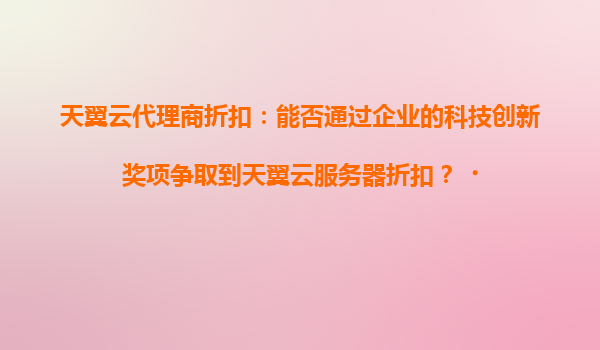2025-04-19天翼云代理商折扣:科技创新奖项能否助力企业获得更多优惠? 一、天翼云的核心优势解析 作为中国电信旗下的云计算品牌,天翼云凭借以下核心能力领跑行业: ...
