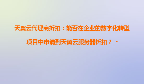 2025-04-19天翼云代理商折扣:助力企业数字化转型的优质选择 一、企业数字化转型与云服务的必要性 在数字经济时代,企业通过数字化转型提升效率、优化资源配置已成为必然趋势。而云计算作为数字化转型的核心基础...