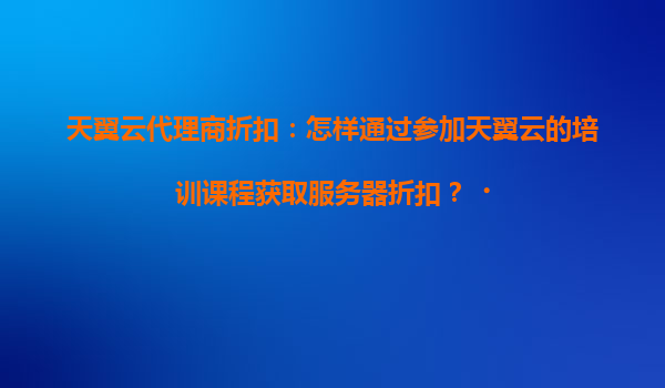 2025-04-18如何通过参加天翼云培训课程获取服务器折扣? 一、天翼云与代理商的协同优势 天翼云作为中国电信旗下的云计算服务品牌,依托强大的基础设施和技术实力,提供稳定高效的云服务器、存储、数据...