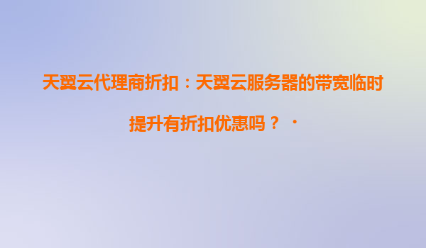 天翼云服务器带宽临时提升的代理商折扣政策解析 一、天翼云的核心优势解析 作为中国电信旗下的云计算品牌,天翼云凭借以下核心能力稳居行业领先地位: 网络质量保障:依托电信全球最大光纤网...
