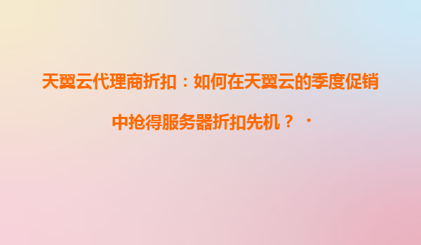 2025-04-18天翼云代理商折扣:如何在天翼云的季度促销中抢得服务器折扣先机? 一、天翼云季度促销的核心价值 天翼云作为中国电信旗下的云服务品牌,凭借其强大的基础设施和全栈云服务能力,已成为企业上...