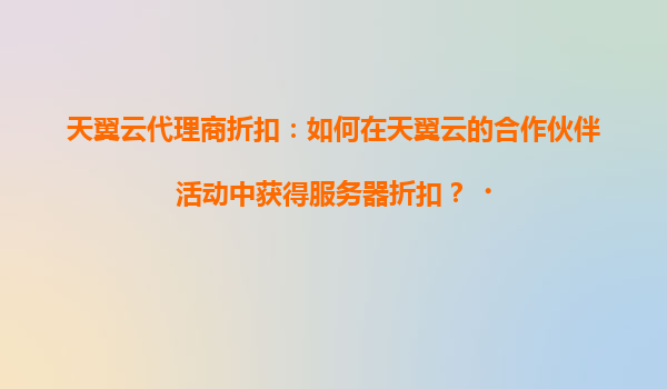 2025-04-17天翼云代理商折扣:如何通过合作伙伴活动获得服务器优惠? 在数字化转型的浪潮中,云计算服务成为企业降本增效的重要工具。作为中国电信旗下的核心云服务品牌,天翼云凭借其强大的技术实力和...
