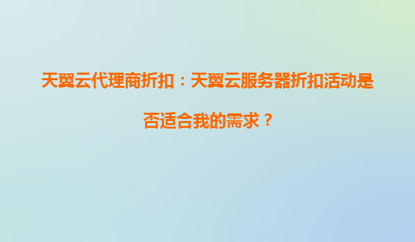 2025-04-16天翼云代理商折扣活动是否适合我的需求? 一、天翼云的核心优势 在探讨天翼云代理商折扣是否适合您的需求前,需先了解天翼云自身的核心能力: ...