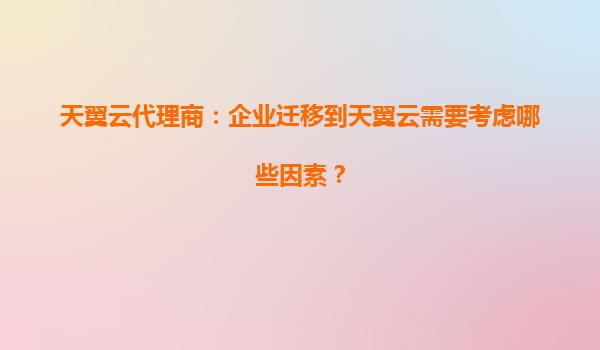 2025-04-16企业迁移到天翼云的核心考虑因素 随着数字化转型的加速,越来越多的企业选择将业务迁移至云端以提升效率与灵活性。天翼云作为中国电信旗下的云计算服务品牌,凭借其技术优势与本土化服务能力,成为...