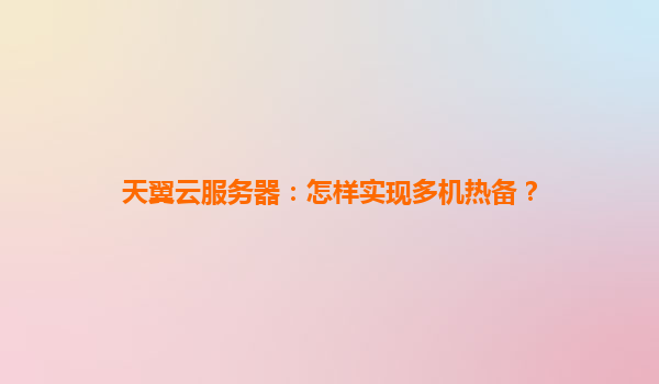 2025-04-15天翼云服务器:怎样实现多机热备? 一、多机热备的核心价值与天翼云优势 多机热备通过冗余架构确保业务连续性,天翼云依托以下优势提供高效解决方案: 分布式高可用架构:跨可用区部署支...