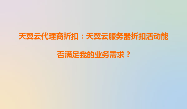 2025-04-14天翼云代理商折扣活动能否满足您的业务需求? 一、天翼云的核心优势解析 在评估云服务能否满足业务需求时,天翼云作为中国电信旗下的云计算品牌,凭借以下核心优势成为众多企业的首选: ...