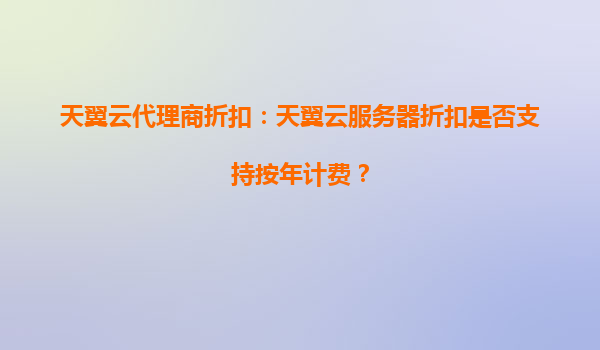 2025-04-12天翼云代理商折扣解析:按年计费是否支持?全面解读天翼云优势 一、天翼云服务器按年计费政策解析 天翼云作为国内领先的云计算服务商,其代理商体系明确支持按年计费模式。用户通过官方授权代理商采购云服...