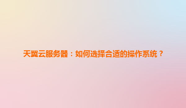 2025-04-11天翼云服务器:如何选择合适的操作系统? 一、天翼云服务器的核心优势 天翼云作为中国电信旗下的云计算服务品牌,凭借其强大的基础设施和网络资源,为用户提供高性能、高可靠的云服务器产品。其全...