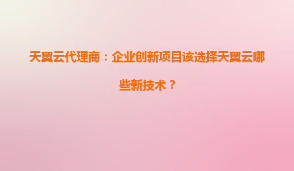 2025-04-11天翼云代理商:企业创新项目该选择天翼云哪些新技术? 一、企业创新项目的技术需求与天翼云优势 在数字化转型浪潮下,企业创新项目需依托云计算实现敏捷开发、资源弹性扩展及智能化能力。天翼云作为中国电...
