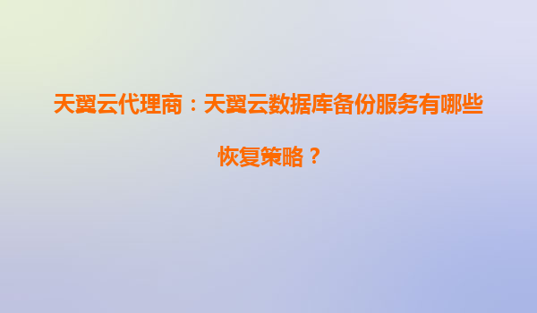 2025-04-08天翼云数据库备份服务的恢复策略与代理商优势解析 一、天翼云数据库备份服务概述 随着企业数字化转型的加速,数据已成为核心资产。天翼云数据库备份服务(CTYunDatabaseBackupService)通过全生命周...