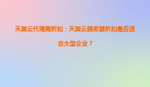 2025-04-07天翼云代理商折扣:是否适合大型企业? 一、天翼云的核心优势解析 作为中国电信旗下的云计算品牌,天翼云凭借以下核心能力在市场中占据重要地位: 高稳定性保障:依托电信...