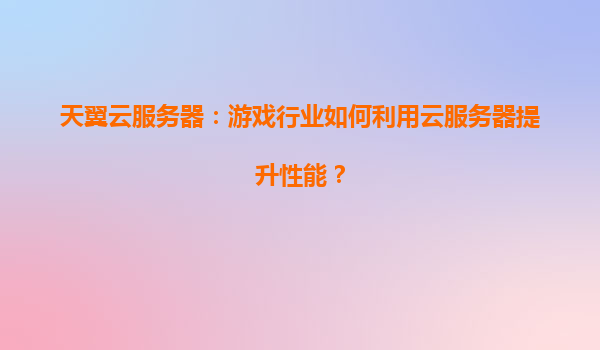 2025-04-05天翼云服务器:游戏行业如何利用云服务器提升性能? 一、游戏行业面临的性能挑战 随着游戏行业的快速发展,玩家对画面品质、实时交互和全球同服的需求日益增长...