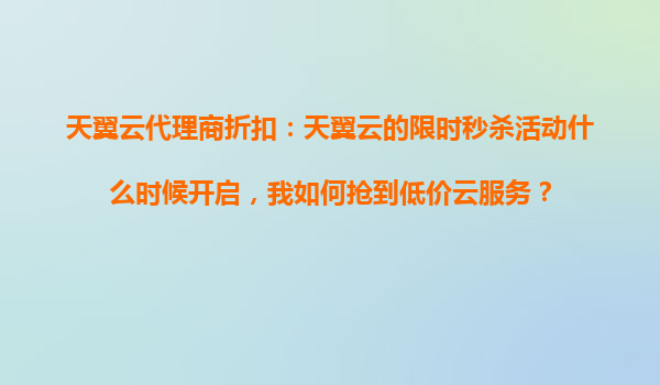 2025-10-16天翼云限时秒杀活动攻略:把握黄金时机,抢占低价云服务 天翼云限时秒杀活动周期揭秘 天翼云的限时秒杀活动通常安排在季度末或重大节日期间,如618、双11、年终大促等节点,活动周期一般为3-7天。具体开启...
