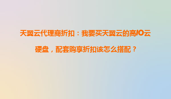 2025-10-16天翼云代理商折扣攻略:高IO云硬盘最优搭配方案 一、为什么选择天翼云高IO云硬盘? 天翼云高IO云硬盘是基于分布式存储架构的块存储服务,具备以下核心优势: 性能卓越:单盘最...