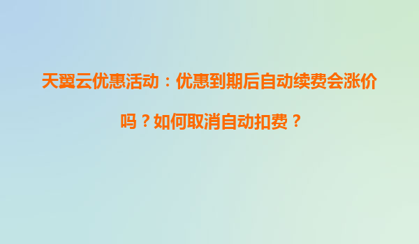 2025-04-03天翼云优惠活动解析:自动续费规则与取消扣费指南 一、天翼云优惠活动的核心优势 作为国内领先的云服务品牌,天翼云凭借三大核心优势持续领跑市场: 央企级安全保障:依托中国电信国家级网络...