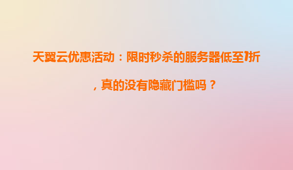 2025-04-03天翼云限时秒杀活动解析:1折服务器是否真有“隐藏门槛”? 一、活动核心内容解读 天翼云近期推出的“限时秒杀”活动以“服务器低至1折”为宣传亮点,直接触达用户对高性价比云服务的核心诉求。活动通过以...