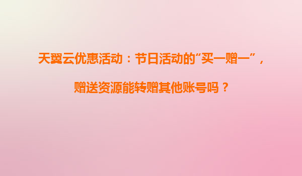 2025-04-03天翼云节日活动“买一赠一”解析:赠送资源能否转赠其他账号? 一、活动规则与赠送资源的核心限制 根据天翼云官方政策,节日活动中获取的赠送资源需遵循“同账号绑定使用”原则。技术层面通过资源标签...