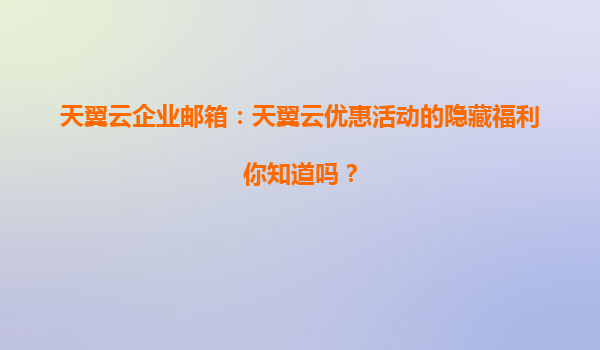 2025-04-01天翼云企业邮箱:天翼云优惠活动的隐藏福利你知道吗? 为什么选择天翼云企业邮箱? 在数字化转型加速的今天,企业邮箱不仅是沟通工具,更是企业专业形象与数据安全的核心载体。天翼云企业邮箱作为...