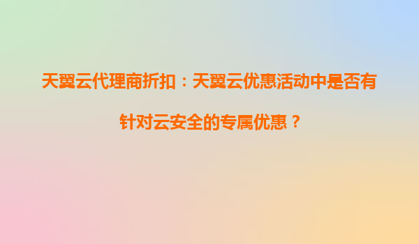 天翼云代理商折扣:云安全专属优惠解析与优势解读 一、天翼云优惠活动中的云安全专属优惠 在天翼云近期的优惠活动中,针对企业用户关注的云安全问题,确实推出了多项专属优惠。通过天翼云官方渠道或授权代...