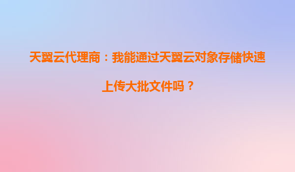 2025-10-10天翼云代理商:我能通过天翼云对象存储快速上传大批文件吗? 一、天翼云对象存储的核心优势 作为中国电信旗下的云计算服务品牌,天翼云对象存储(OOS)凭借其高...