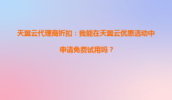 2025-10-09天翼云代理商折扣:我能在天翼云优惠活动中申请免费试用吗? 一、天翼云的优势与免费试用政策 天翼云作为中国电信旗下的云计算品牌,凭借其强大的基础设施、稳定的网络环境和丰富的产品矩阵,已成为国内云...
