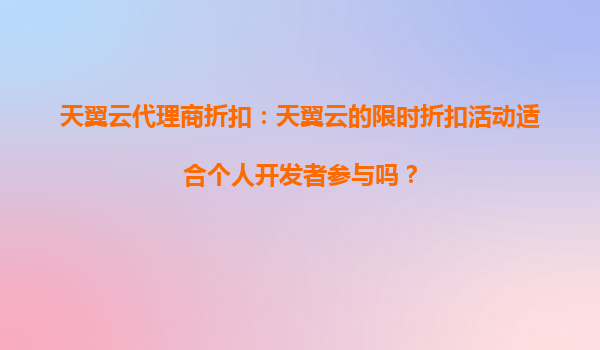 2025-10-09天翼云代理商折扣:天翼云的限时折扣活动适合个人开发者参与吗? 一、天翼云简介 天翼云是中国电信旗下的云计算品牌,依托中国电信强大的网络资源和基础设施,提供包括云服务器、云...