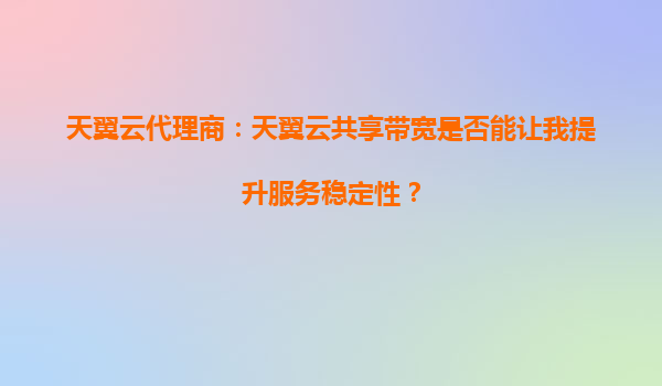 2025-10-07天翼云代理商:天翼云共享带宽如何提升服务稳定性? 引言 在当今数字化时代,企业对云服务的依赖日益加深,尤其是对网络带宽和稳定性的需求更为迫切。作为天翼云代理商,我们深知客户对服务质量的关注...