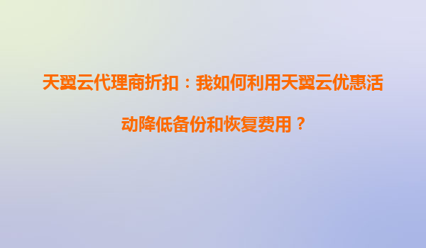 2025-10-07天翼云代理商折扣:如何利用天翼云优惠活动降低备份和恢复费用? 一、天翼云的核心优势 天翼云作为中国电信旗下的云计算服务品牌,凭借其强大的基础设施和本土化服务能力,在数据备份与恢复领域具有显著优...