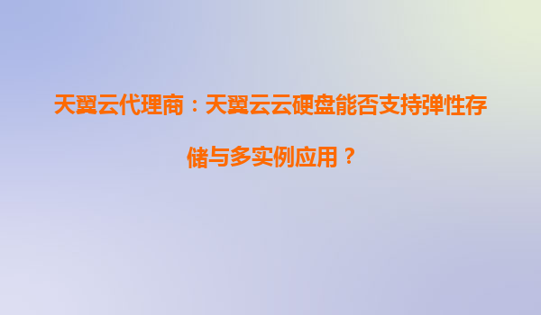 2025-10-07天翼云代理商:天翼云云硬盘能否支持弹性存储与多实例应用? 一、天翼云云硬盘的核心能力 天翼云作为中国电信旗下的云计算服务品牌,其云硬盘产品(ElasticBlo...