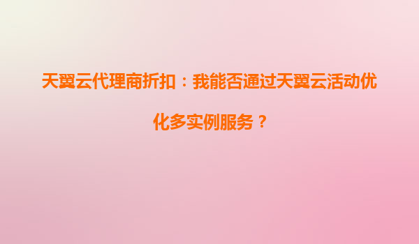 2025-10-06天翼云代理商折扣:如何通过天翼云活动优化多实例服务? 引言 随着云计算技术的快速发展,越来越多的企业选择将业务迁移到云端。天翼云作为中国电信旗下的云计算品牌,凭借其强大的基础设施和稳定的服务,...