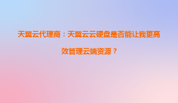 2025-10-06天翼云代理商:天翼云云硬盘如何助力企业高效管理云端资源? 一、云端资源管理的核心挑战 在数字化转型浪潮中,企业上云已成为必然趋势。然而,随着业务规模的扩大和数据量的激增,如何高效管理云端资源成...