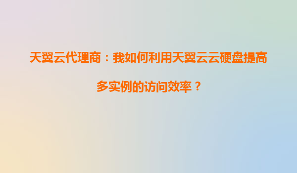 2025-10-06天翼云代理商:我如何利用天翼云云硬盘提高多实例的访问效率? 一、天翼云云硬盘的核心优势 天翼云云硬盘(ElasticBlockStorage,EBS)作为高性能、高可靠的块存储服务,具备以下核心优势: 高性...