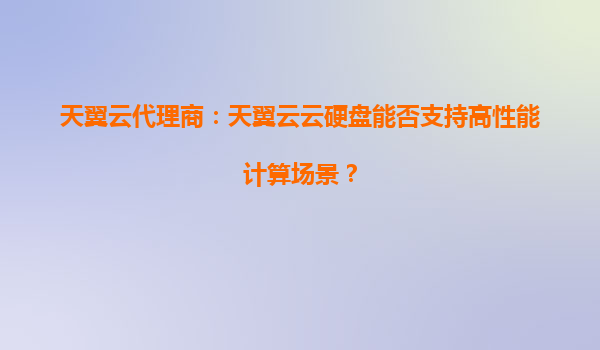 2025-10-06天翼云代理商解析:天翼云云硬盘如何赋能高性能计算场景 一、高性能计算场景的核心需求 高性能计算(HPC)通常应用于科学模拟、金融建模、人工智能训练等场景,...