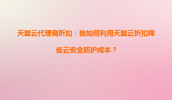 2025-10-05天翼云代理商折扣:如何利用天翼云折扣降低云安全防护成本? 引言 随着企业数字化转型的加速,云安全防护已成为企业IT架构中不可或缺的一部分。然而,高昂的云安全成本往往让企业望而却步。天翼云作为国内...