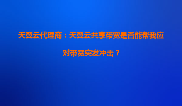 2025-10-05天翼云代理商:天翼云共享带宽如何助力企业应对带宽突发冲击? 一、带宽突发冲击的挑战 在数字化时代,企业业务对网络带宽的需求呈现明显的波动性。例如,电商...