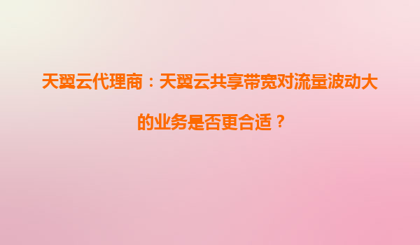 2025-10-05天翼云代理商:天翼云共享带宽对流量波动大的业务是否更合适? 引言 在数字化转型的浪潮中,企业对云计算的需求日益增长,尤其是对网络带宽的灵活性和成本效益...