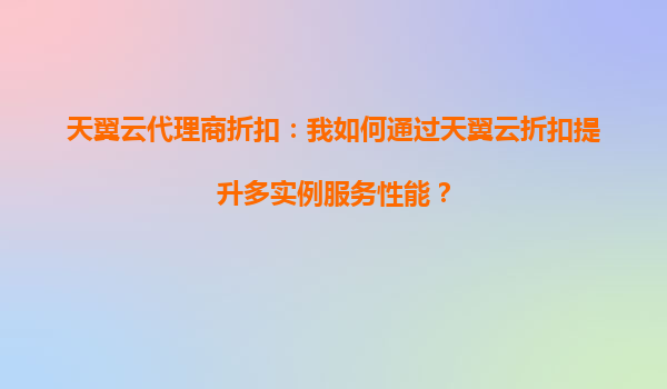 2025-10-05天翼云代理商折扣:如何通过天翼云折扣提升多实例服务性能 一、天翼云的核心优势 天翼云作为中国电信旗下的云计算品牌,凭借其强大的基础设施和丰富的行业经验,为用户提供高性能、高可靠的云服务...