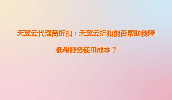 2025-10-05天翼云代理商折扣:能否帮助降低AI服务使用成本? 引言:AI服务成本与云计算的关系 随着人工智能(AI)技术的快速发展,越来越多的企业和开发者开始利用AI服务...