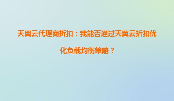 2025-10-05天翼云代理商折扣:如何通过天翼云折扣优化负载均衡策略? 引言 在当今数字化时代,云计算已成为企业IT基础设施的核心组成部分。负载均衡作为云计算中的关键技...