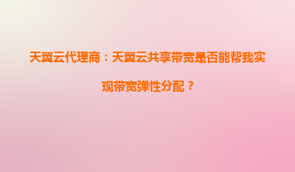 2025-10-05天翼云代理商:天翼云共享带宽是否能帮我实现带宽弹性分配? 一、天翼云共享带宽的核心优势 天翼云作为中国电信旗下的云计算服务品牌,其共享带宽服务依托电信级网络基础设施,具备以下核心优势: ...