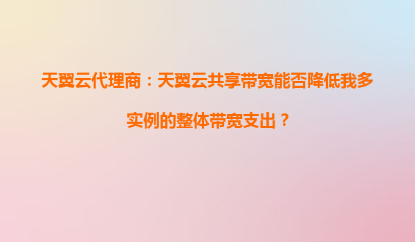 2025-10-05天翼云代理商:天翼云共享带宽能否降低我多实例的整体带宽支出? 一、共享带宽的核心价值与天翼云优势 共享带宽是天翼云提供的一种灵活计费模式,允许用户将多个云服务器实例(如ECS、负载均衡等)的带宽需...