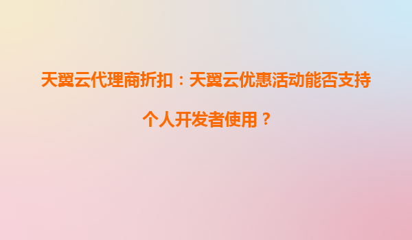 2025-10-03天翼云代理商折扣:天翼云优惠活动能否支持个人开发者使用? 随着云计算技术的快速发展,越来越多的个人开发者开始关注云服务,希望通过云平台提升开发效率、降低运维成本。天翼云作为中国电信旗下的云计算品牌...