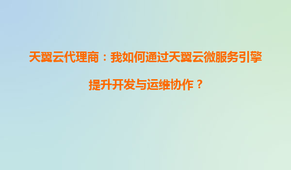2025-09-30天翼云代理商:我如何通过天翼云微服务引擎提升开发与运维协作? 一、天翼云微服务引擎的核心优势 天翼云微服务引擎(CT-MSE)作为中国电信旗下的云原生技术解决方案,凭借其高性能、高可靠性和安全性,为...