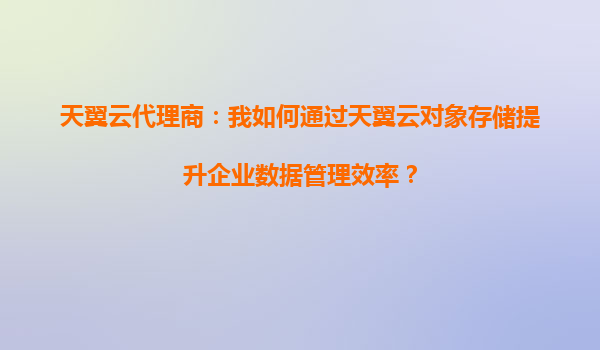 天翼云代理商:如何通过天翼云对象存储提升企业数据管理效率? 在数字化时代,企业数据管理已成为核心竞争力之一。面对海量数据的存储、备份和共享需求,传统存储方式往往难以满足高效、安全和低成本的要求。作...
